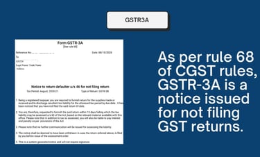 As per rule 68 of CGST rules, GSTR-3A is a notice for not filing GST returns issued under the GST regulations.