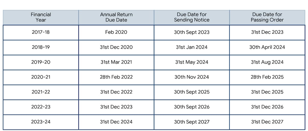 Time Limit for Passing Order: The order must be passed within 42 months (3.5 years) from the due date of furnishing the annual return for the relevant financial year.